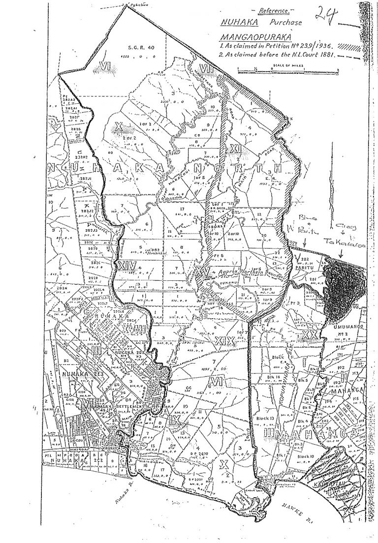 In 1936 there were two major petitions on the Nuhaka block. The first, from Hirini Whaanga Christy and 104 others,.[18]; was presented by Apirana Ngata and contained 14seperate points.